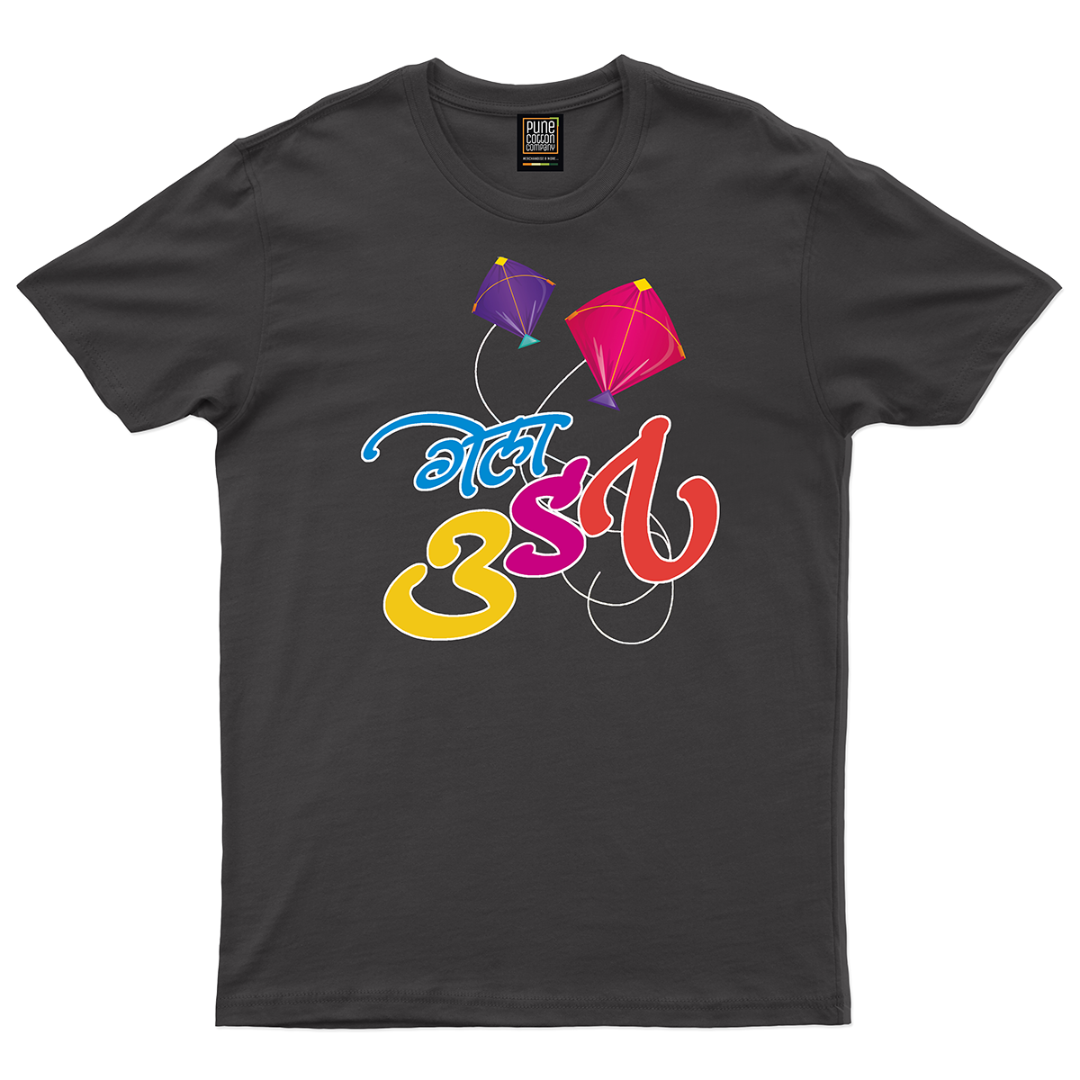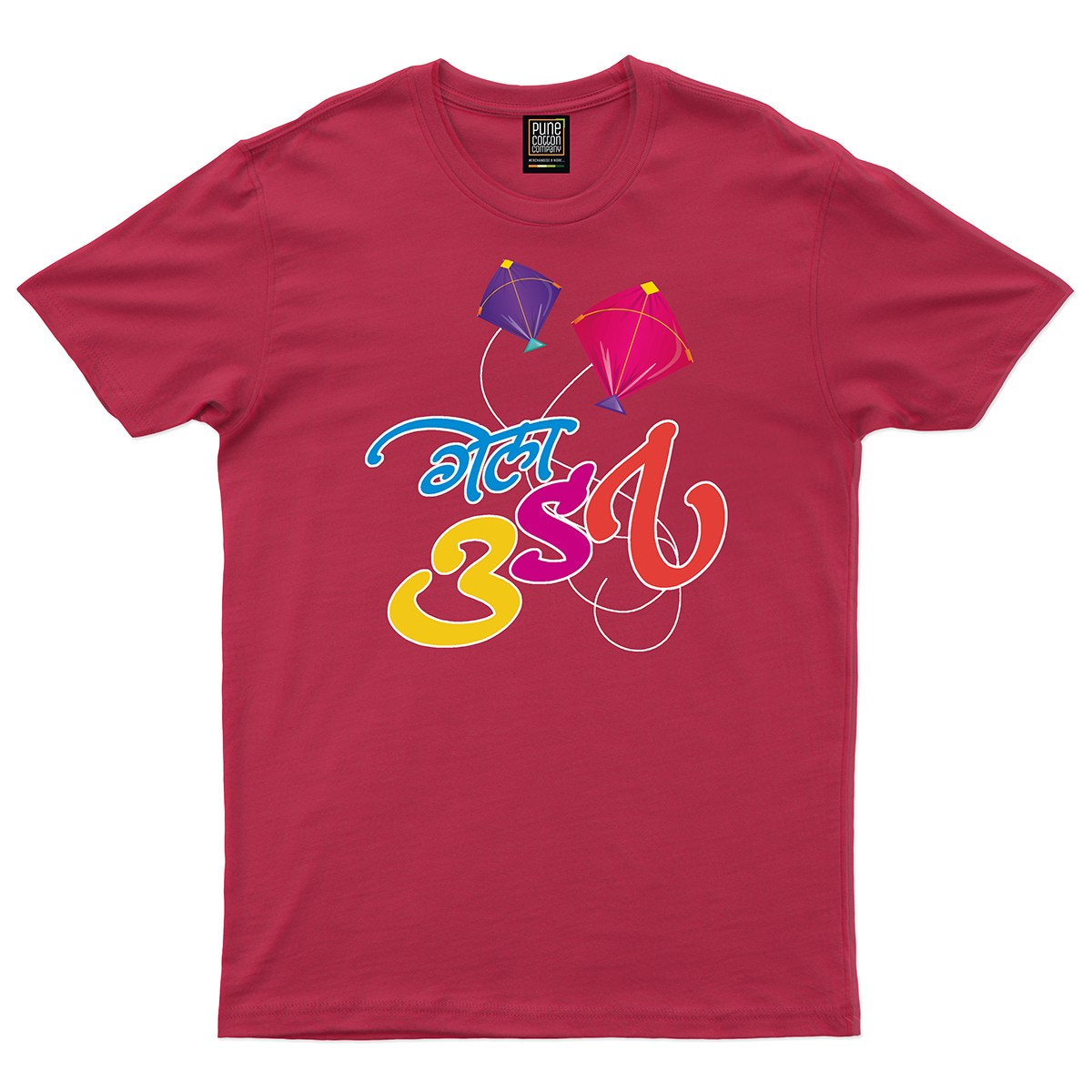 The T-shirt with “गेला उडत ” written in Marathi is a fun and quirky choice that grabs attention. The phrase, often used humorously in casual conversations, adds a playful and lighthearted vibe. Perfect for someone with a good sense of humor, it reflects a carefree attitude and a love for witty expressions. Whether worn casually or to make a statement, this T-shirt is sure to spark smiles and start conversations. Ideal for anyone looking to blend style with Marathi culture and humor. Also a perfect buy for SANKRANT.